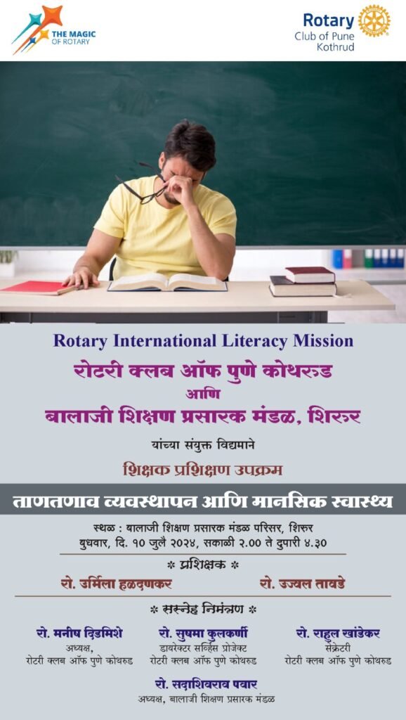 बालाजी शिक्षण प्रसारक मंडळाच्या बालाजी इंग्लिश मीडियम स्कूल व बालाजी विश्वविद्यालयांमध्ये नेहमीच विद्यार्थ्यांच्या व शिक्षकांच्या सर्वांगीण विकासाकडे लक्ष दिले जाते. सर्वांना मार्गदर्शन करण्यासाठी संस्थेचे अध्यक्ष सदाशिव अण्णा पवार हे नेहमीच वेगवेगळे मार्गदर्शक बोलावतात . दिनांक 10 जुलै 2024 रोजी रोटरियन उज्वल तावडे सर आणि रोटरियन उर्मिला हळदणकर मॅडम यांनी दोनही विद्यालयातील शिक्षकांना ताण- तणाव व मानसिक स्वास्थ्य याविषयी मोलाचे मार्गदर्शन केले. सदर कार्यक्रम फार उत्तम झाला त्यावेळी काढलेली काही क्षणचित्रे..